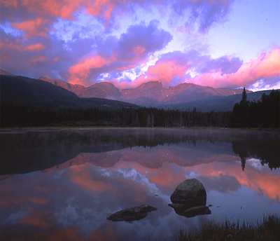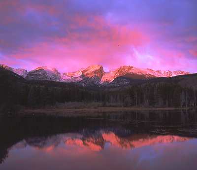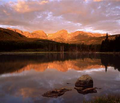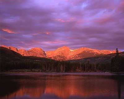 Sunrise on Hallett Peak over Bear Lake