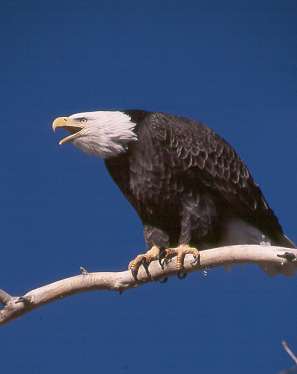 On the crest of a hill were some trees, and sometimes in the winter, I could look far out across this open space and see a big black blob with a white head sitting in that tree--a bald eagle.