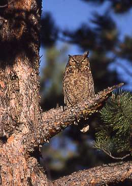 One morning I was doing exactly that, watching an area with a bluebird, sapsucker, swallow, and wren, when I saw four great horned owls.