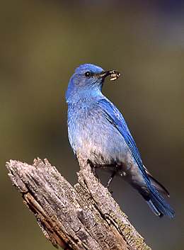 A bluebird can be sitting on top of a 20-30 ft tree, and suddenly dive to the ground and nab a bug.