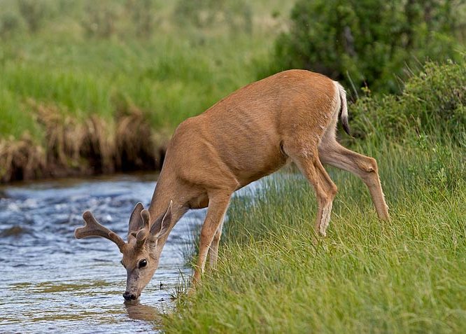 Fortunately for me, this particular buck got thirsty after eating all that dry grass and took a drink in the river.