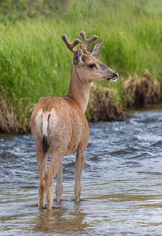 Instead, I found two mule deer bucks in velvet, grazing among the scrubby vegetation.