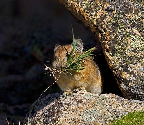 There are probably lazy marmots laying around on the same rocks where the industrious pikas are busily gathering plants.