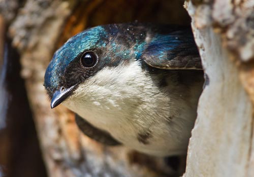 This tree swallow seemed content to sit in its hole and watch me photograph a sapsucker nest, so I went over and took its picture too.