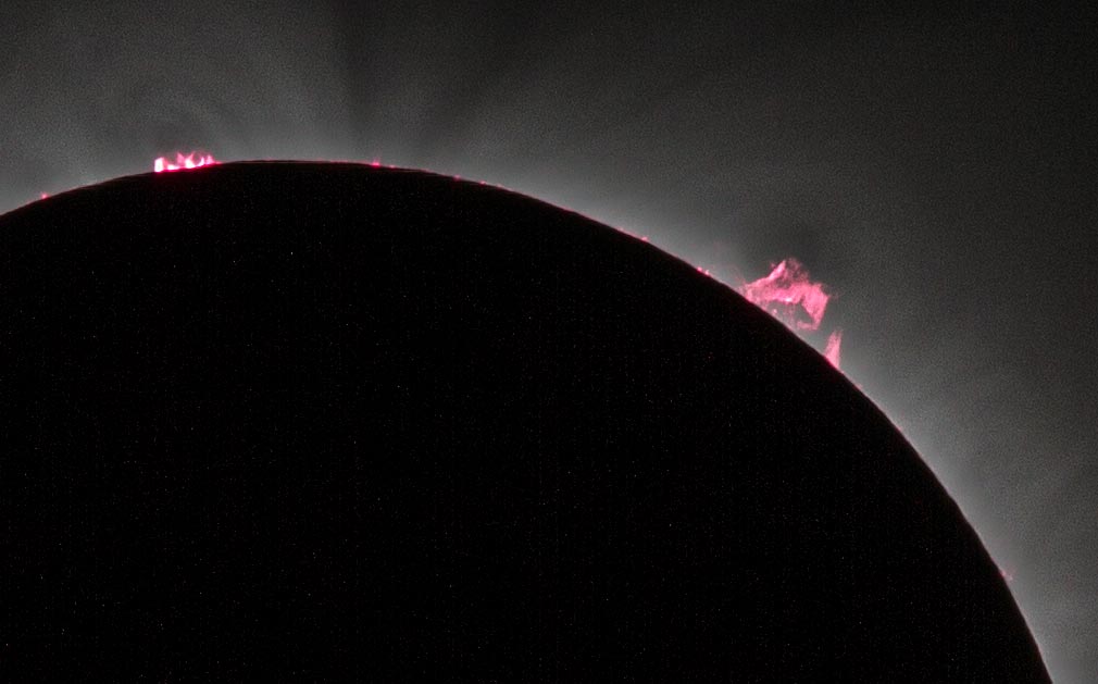 A short exposure lets you see the red solar prominences on the surface of the sun.