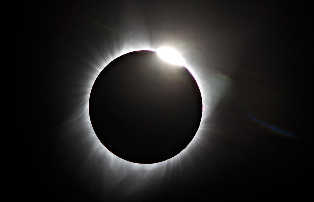 After two and a half minutes, the first rays of direct sun returned giving this view called the "diamond ring" effect.