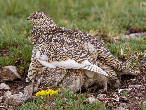 Their mottled feathers look very much like lichen-covered tundra rocks which makes them extremely hard to see.