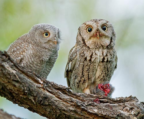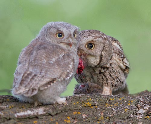 After a few weeks, the owl family has settled into a nocturnal routine.