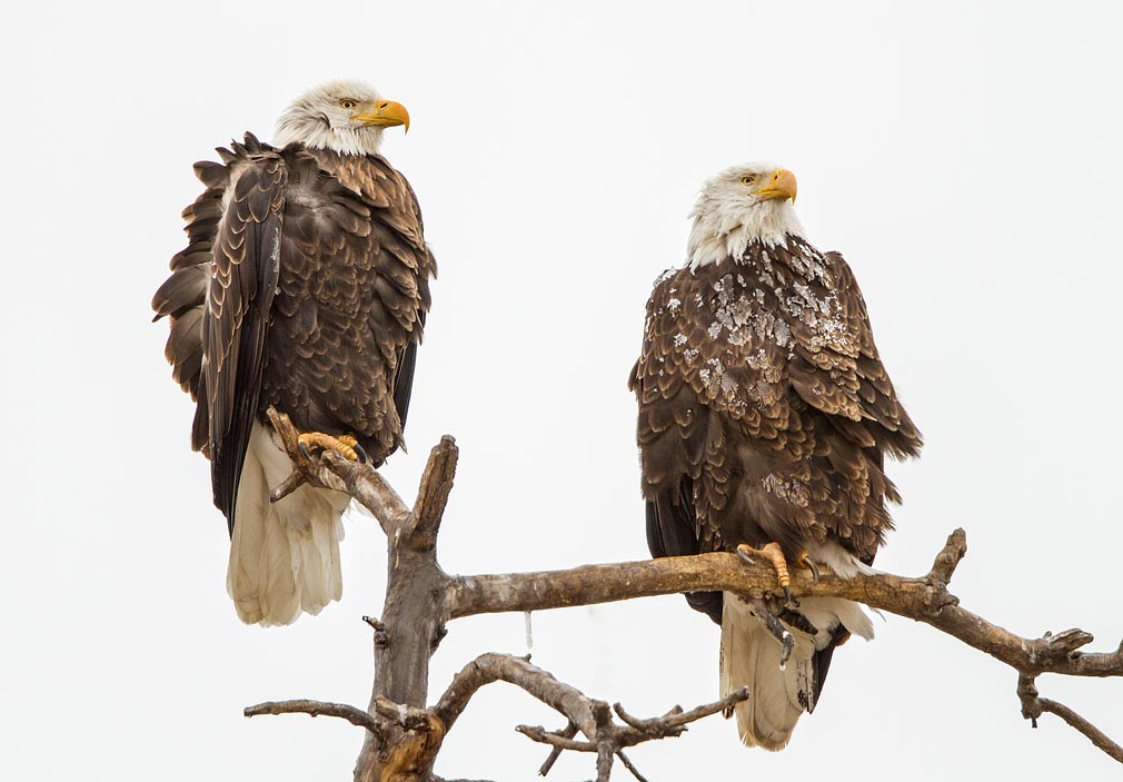 After a cold night of freezing fog and drizzle, one eagle had a lot of ice accumulated on its feathers.