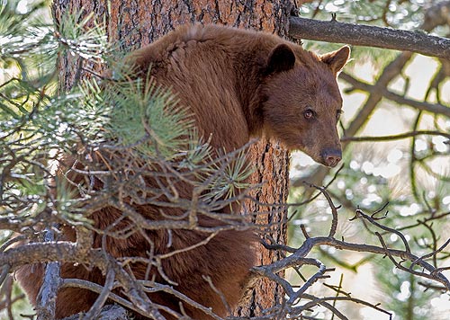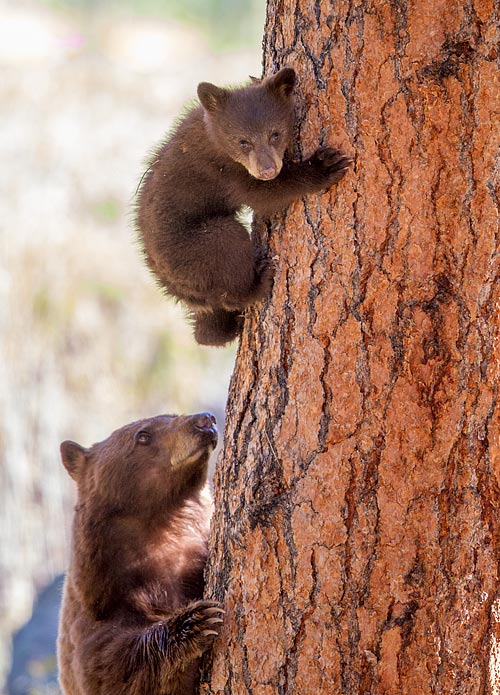 Turned out her two cubs were way up high in that tree.