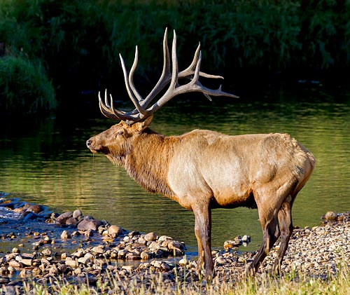 He stopped for a cool drink of fresh river water in the morning, then bugled mightily.