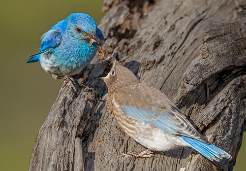 In mid June, mountain bluebirds are busy hunting for bugs to feed their hungry chicks.